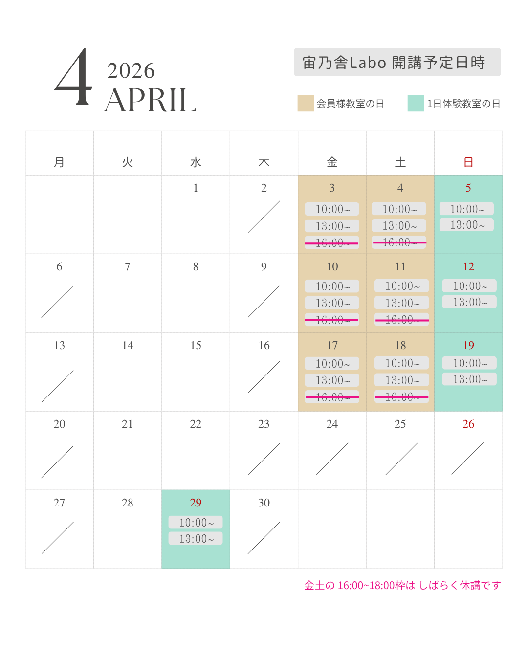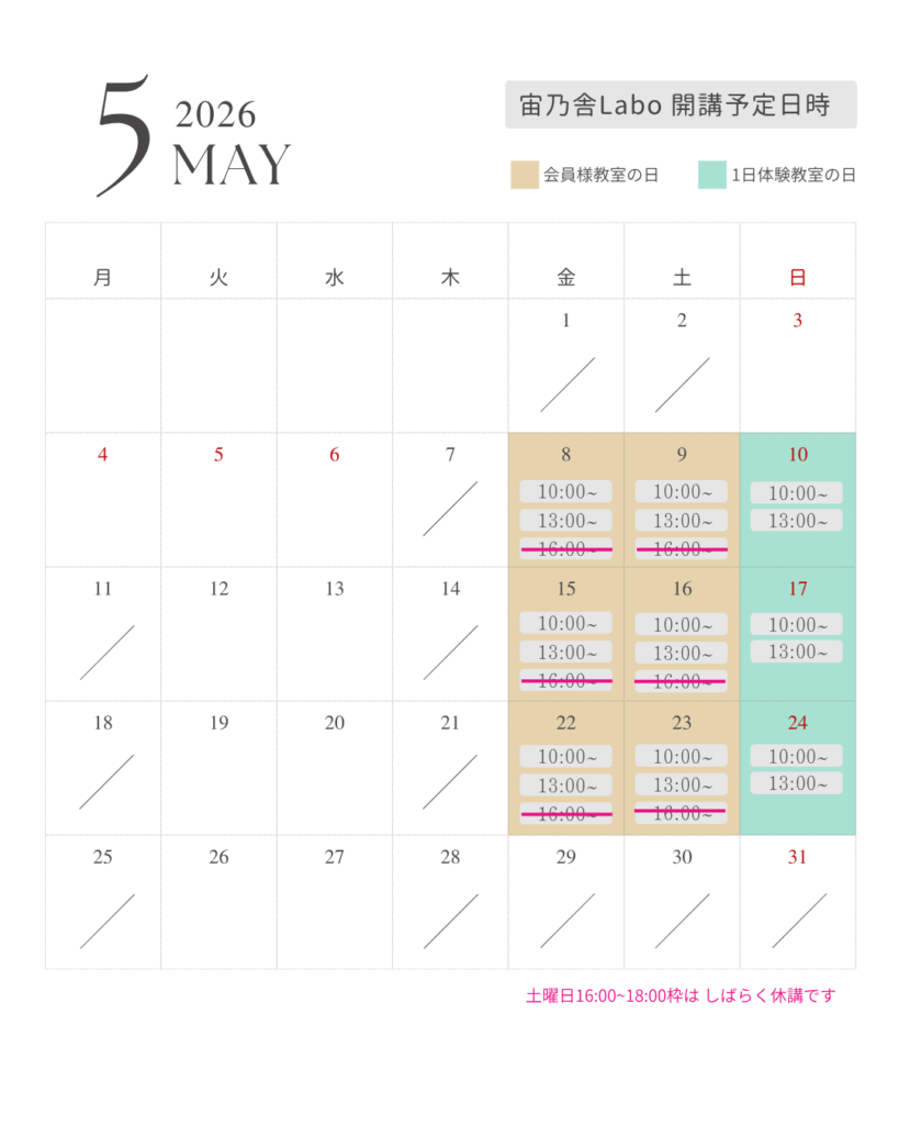 - 祝日が重なる場合開講することがあります(詳細は都度お知らせします)
